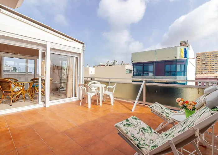 Tijdens een verblijf in Bonamar Appartement Las Palmas van 50 m² kunnen gasten zich ontspannen op een terras op circa 5-minuten loopafstand van het Elder Museum van Wetenschap en Technologie.
